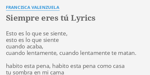 Tú eres siempre lo que yo quiero. No sé lo que me pasa Que cada vez que te encuentro Confundes mis ganas Me convierto en tu perro Miras y disimulas Que sientes lo mismo Y ahogas tus ganas En un tibio suspiro. Eres Tu 3 Lyrics. Conjugation Documents Grammar Dictionary Expressio. Siempre has sido tú y lo seras y pasaran los años y seguirás siéndolo. Naranana naranarana Naranana naranaranarana Naranana naranaranarana. Sullisullinistaflopera 𖥻𓂃 jungkookkooktwe 达连emo_xxz teamomuchoiluvnu0 𝟹tyunfeliz.